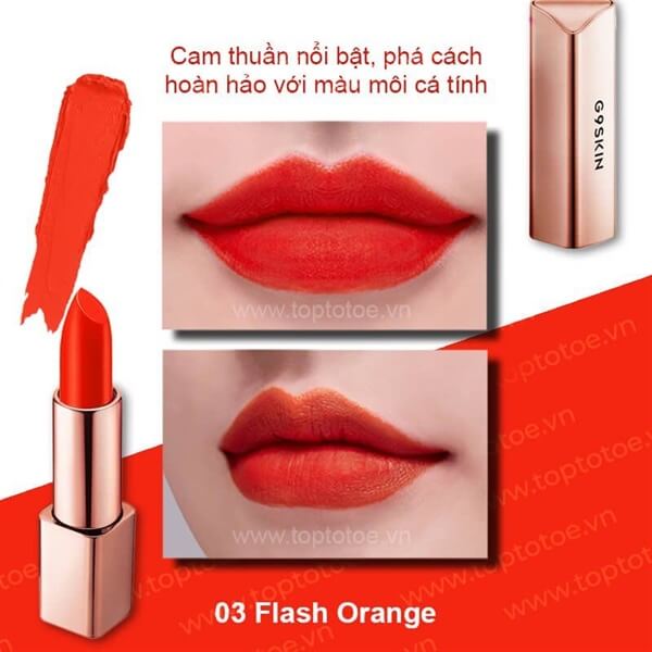 Đánh giá Son lì siêu mịn g9 skin first v-fit lipstick no.03 flash orange – cam thuần